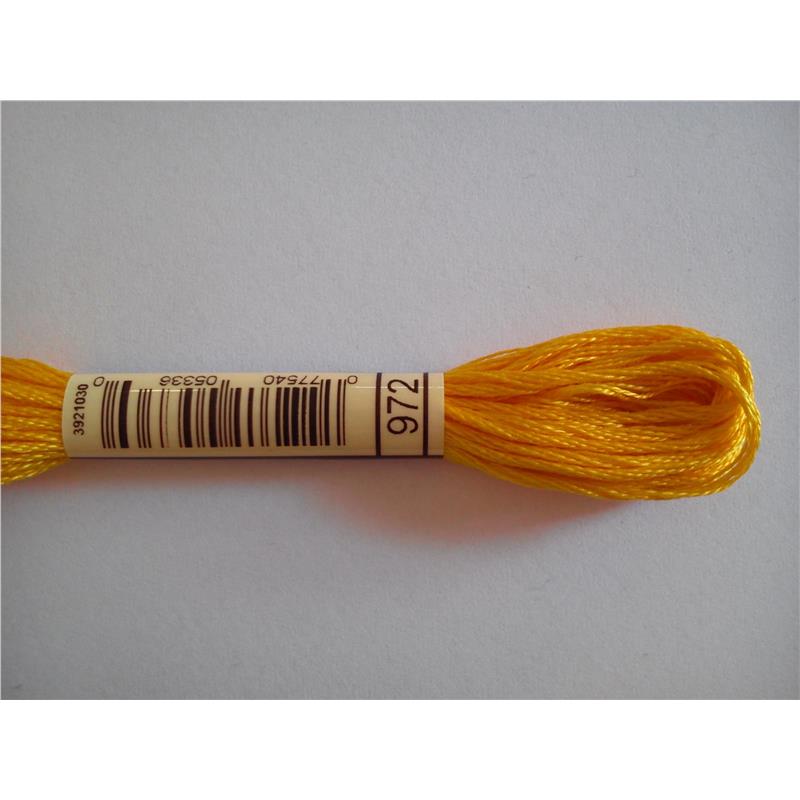 Mulina DMC kolor 972 - pasemko bawełniane 8m/8yd, dzieli się na 6 nitek. Najwyższej jakości podwójnie merceryzowana bawełna długowłóknista nadaje tej nici wyjątkowego połysku. Technika: haft krzyzykowy, haft półkrzyżykowy, haft płaski, igłą malowane.
