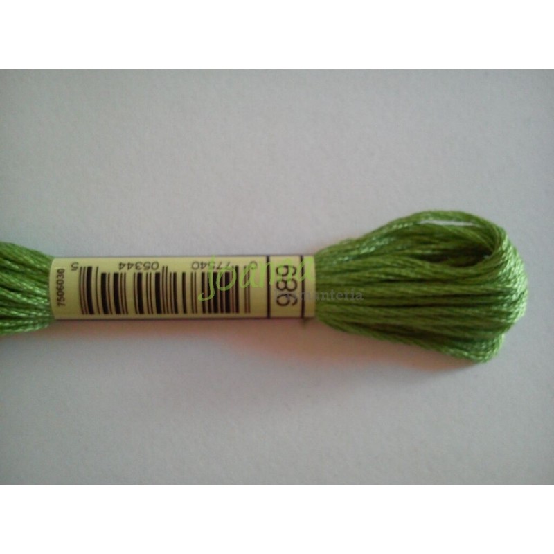 Mulina DMC kolor 989 - pasemko bawełniane 8m/8yd, dzieli się na 6 nitek. Najwyższej jakości podwójnie merceryzowana bawełna długowłóknista nadaje tej nici wyjątkowego połysku. Technika: haft krzyzykowy, haft półkrzyżykowy, haft płaski, igłą malowane.