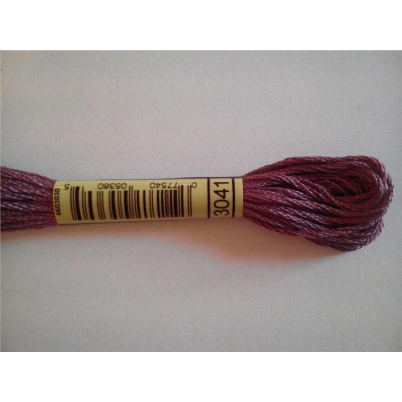 Mulina DMC kolor 3041- pasemko bawełniane 8m/8yd, dzieli się na 6 nitek. Najwyższej jakości podwójnie merceryzowana bawełna długowłóknista nadaje tej nici wyjątkowego połysku. Technika: haft krzyzykowy, haft półkrzyżykowy, haft płaski, igłą malowane.
