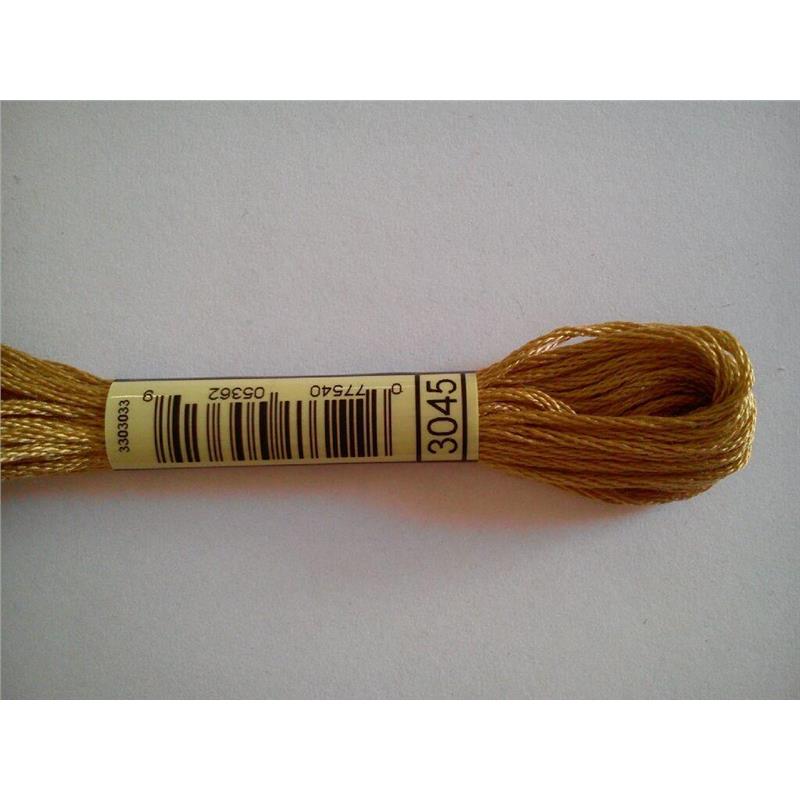 Mulina DMC kolor 3045- pasemko bawełniane 8m/8yd, dzieli się na 6 nitek. Najwyższej jakości podwójnie merceryzowana bawełna długowłóknista nadaje tej nici wyjątkowego połysku. Technika: haft krzyzykowy, haft półkrzyżykowy, haft płaski, igłą malowane.