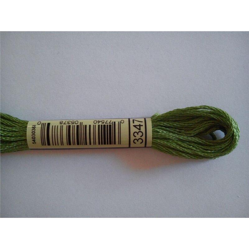 Mulina DMC kolor 3347- pasemko bawełniane 8m/8yd, dzieli się na 6 nitek. Najwyższej jakości podwójnie merceryzowana bawełna długowłóknista nadaje tej nici wyjątkowego połysku. Technika: haft krzyzykowy, haft półkrzyżykowy, haft płaski, igłą malowane.
