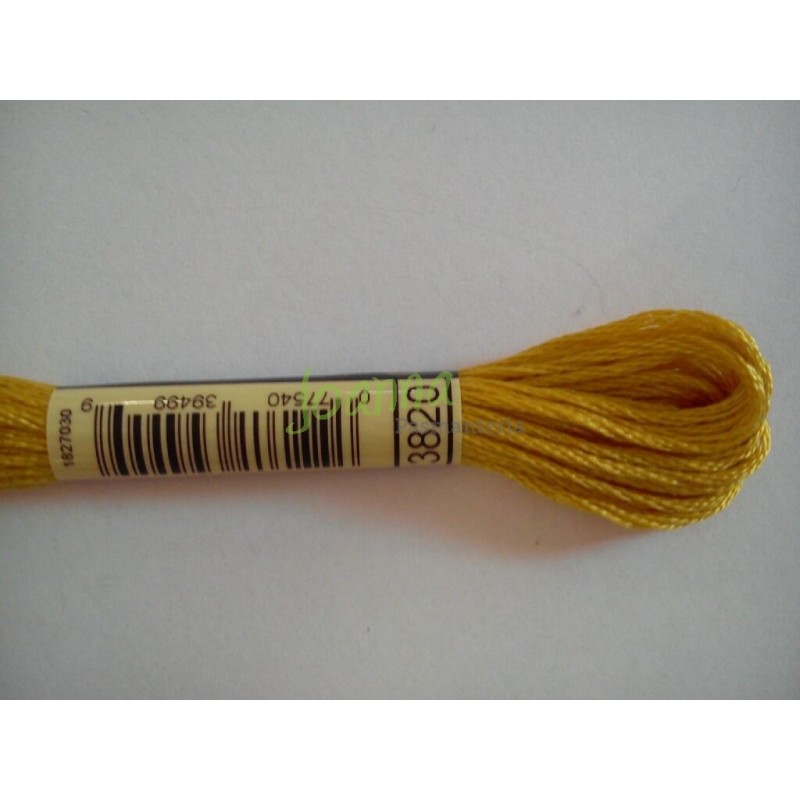 Mulina DMC kolor 3820- pasemko bawełniane 8m/8yd, dzieli się na 6 nitek. Najwyższej jakości podwójnie merceryzowana bawełna długowłóknista nadaje tej nici wyjątkowego połysku. Technika: haft krzyzykowy, haft półkrzyżykowy, haft płaski, igłą malowane.