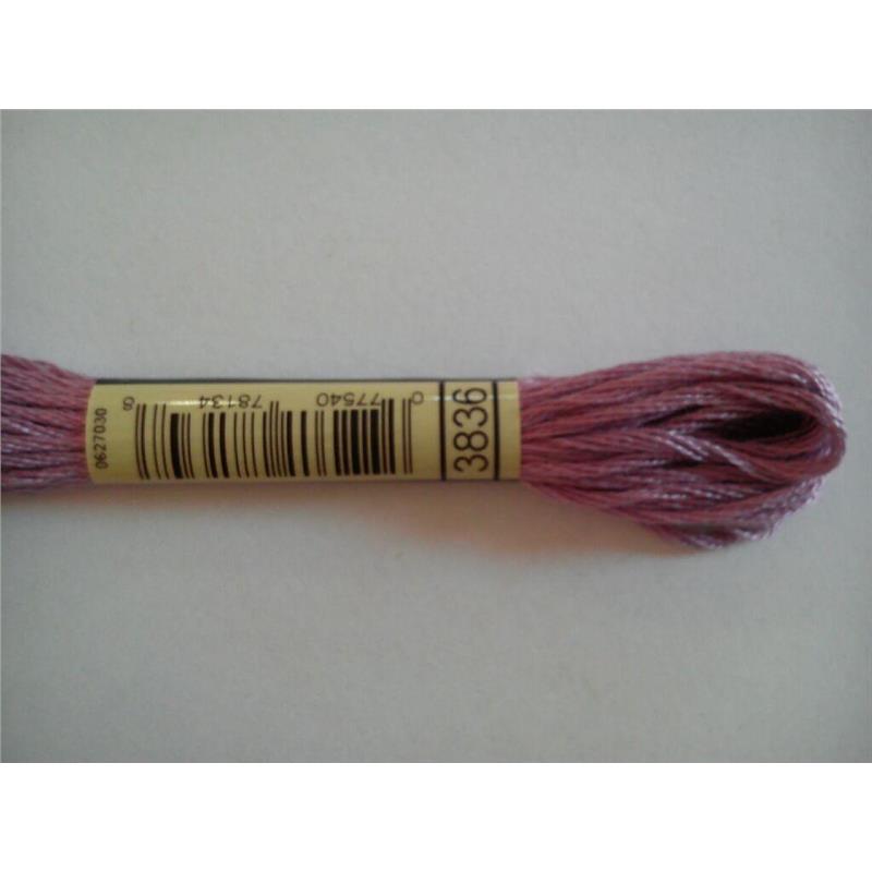 Mulina DMC kolor 3836- pasemko bawełniane 8m/8yd, dzieli się na 6 nitek. Najwyższej jakości podwójnie merceryzowana bawełna długowłóknista nadaje tej nici wyjątkowego połysku. Technika: haft krzyzykowy, haft półkrzyżykowy, haft płaski, igłą malowane.