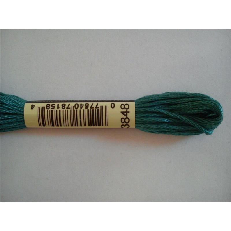 Mulina DMC kolor 3848- pasemko bawełniane 8m/8yd, dzieli się na 6 nitek. Najwyższej jakości podwójnie merceryzowana bawełna długowłóknista nadaje tej nici wyjątkowego połysku. Technika: haft krzyzykowy, haft półkrzyżykowy, haft płaski, igłą malowane.