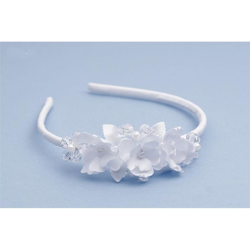 Opaska komunijna 62. Białe kwiatki z kryształkami. Produkt polski. rozmiar uniwersalny.