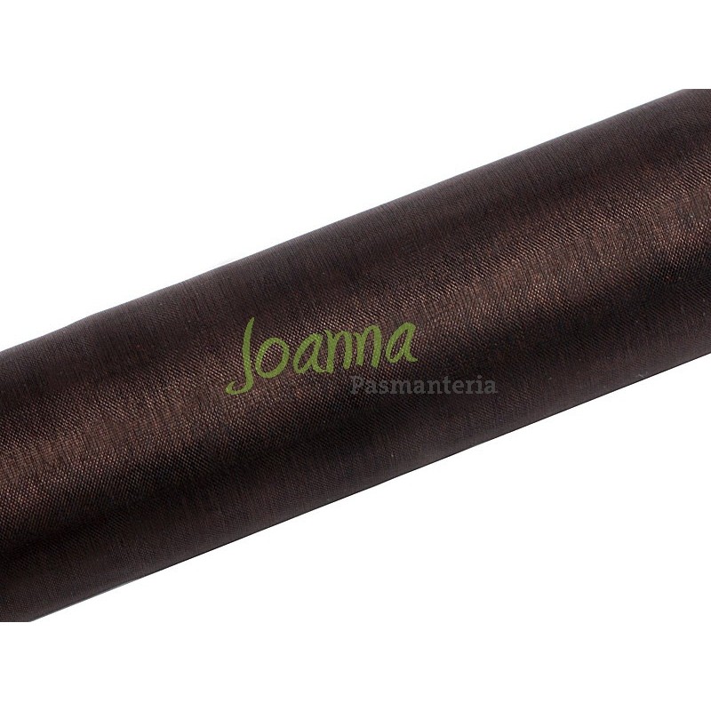 Organza gładka, brąz. Kolor biały. Szerokość 0,38cm. Długość 9m. Cena za 1 rolkę.