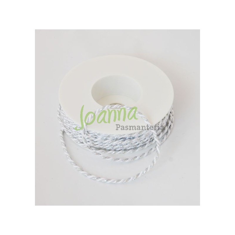 Sznur skręcany 845224535. Kolor biało-srebrny. Szerokość 4mm. Cena za 1 metr.