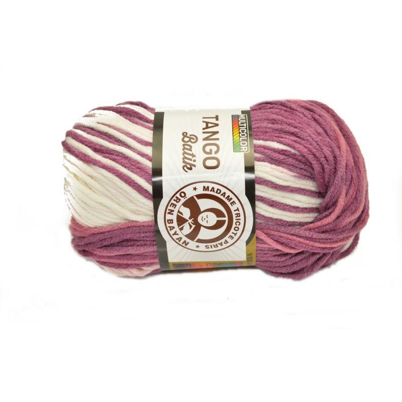 Włóczka Tango Batik Madame Tricote Paris. Kolor 507 melanż różowo-biało-fioletowo. Plus GRATIS wybrany losowo. Wysokiej jakości włóczka turecka, miękka i przyjemna w dotyku. Włóczka na typowo jesienno - zimowe wyroby. Idealna na delikatne i ciepłe sweterki, szaliki, czapki, zarówno dla dzieci jak i dorosłych - bardzo wydajna. Opis: producent: MADAME TRICOTE skład: 100% gruby akryl 1 motek: 100 g / 120 mb Zalecane druty: 6 - 8 mm Zalecane szydełka: 7 - 9 mm