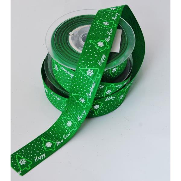 Tasiemka ozdobna CP100184. Rypsowa z nadrukiem New Year. Kolor zielony. Szerokość 25mm. Cena za 1 metr.