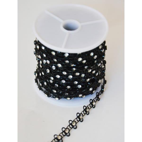 Taśma ozdobna CT 611. Kolor czarny z cyrkonią . Szerokość 8mm. Plastik. Cena za 1metr.