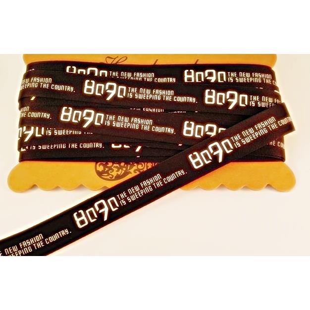 Taśma dekoracyjna lampasowa..Kolor czarny z białymi napisami . Szerokość 25mm. Cena za 1 metr.