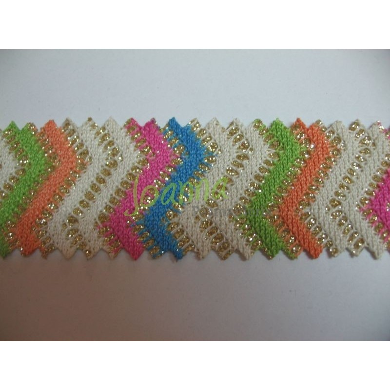 Taśma ozdobna CT 603 materiałowa. Szerokość 4cm. Długość 140cm. Kolor mix beżowy, złoty, różowy, niebieski. Cena za 1mb.