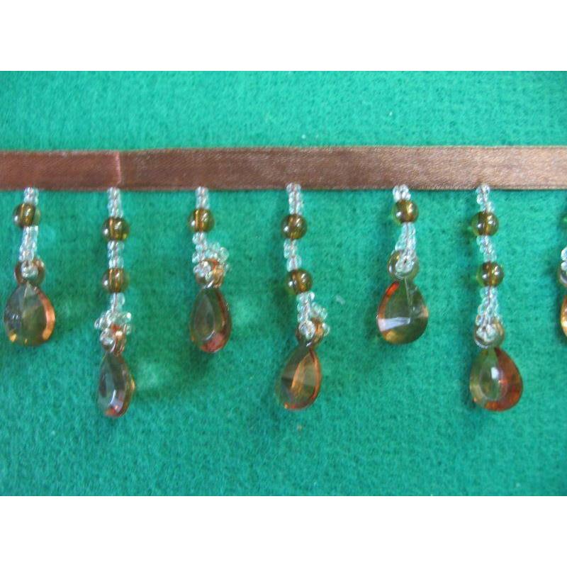 Taśma z koralikami 5051 brąz. Długość koralika 5cm i 3,5 cm.Taśma służy do wykończenia firan i zasłon.