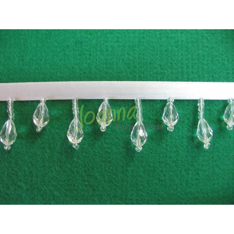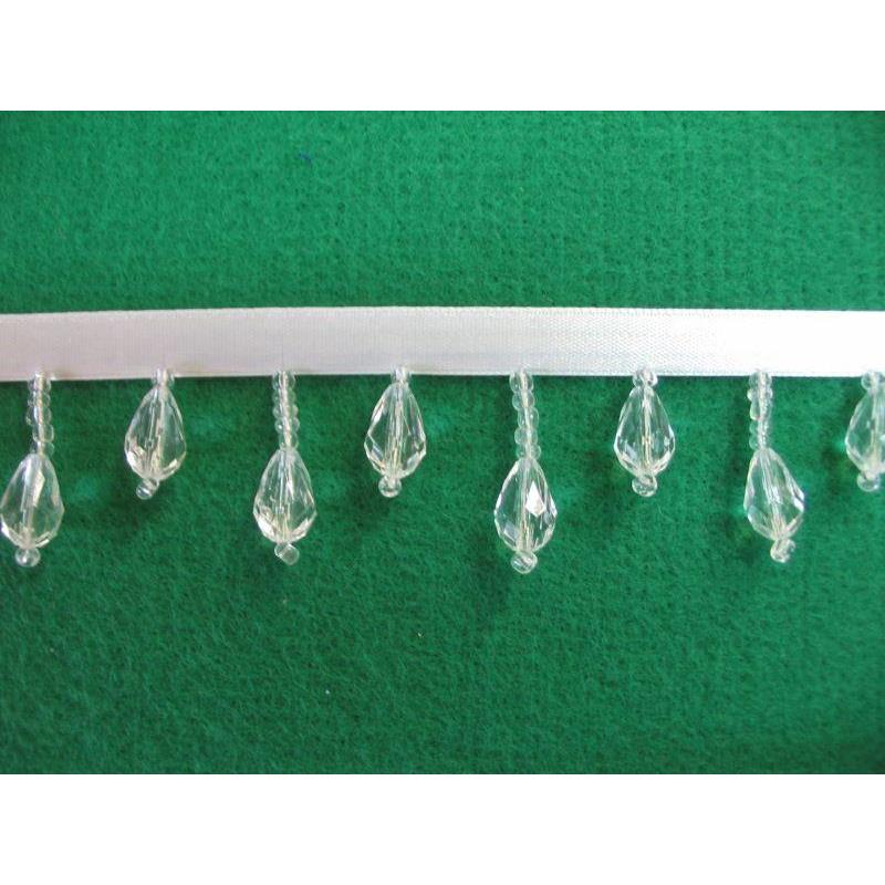 Taśma z koralikami 4799 białe. Długość koralika 2,5cm i 2 cm.Taśma służy do wykończenia firan i zasłon.