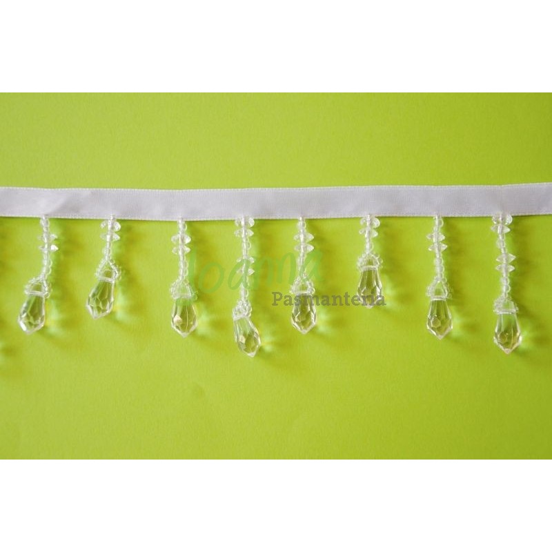 Taśma z koralikami do firan 4447. Kolor biała. Cena za 1 metr. Długość koralika z taśma 5,5cm, 4,5cm i 4cm.