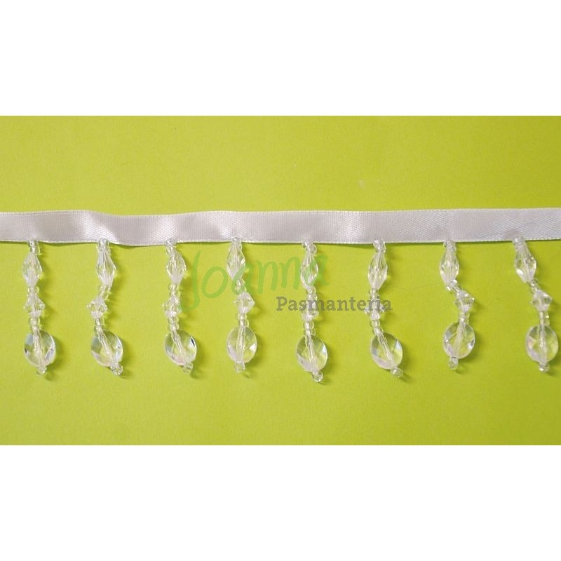 Taśma ozdobna z koralikami .5272. Kolor biały. Dlugość koralika z taśmą 5cm. Cena za 1 metr.