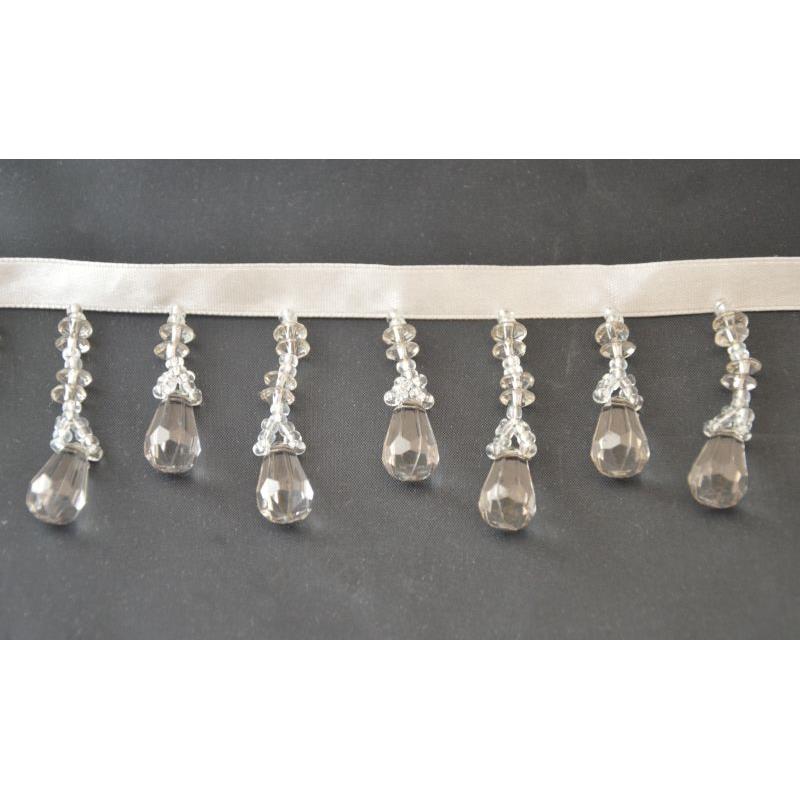 Taśma z koralikami 5029 koraliki szare na szarej taśmie. Długość koralika 5,5 cm i 4,5cm z taśmą. Taśma służy do wykończenia firan i zasłon. Cena za 1m.
