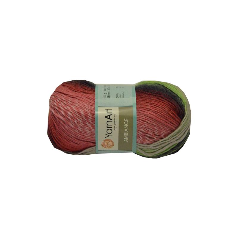 Włóczka Ambiance YarnArt Kolor 150 melanż zieleni, bordo i różu. 100g/250m. Skład 20% Wool i 80% Akryl Zalecane druty 4mm, szydełko 4mm. Wiosenna melanżowa włóczka doskonale nadaje sie na chusty, bluzki, sikienki. Cena za 1 motek.