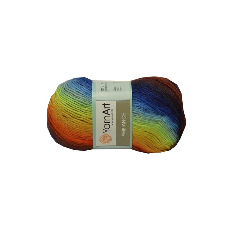 Włóczka Ambiance YarnArt Kolor 157 melanż niebieskiego, pomarańczowego, żółtego i rudego. 100g/250m. Skład 20% Wool i 80% Akryl Zalecane druty 4mm, szydełko 4mm. Wiosenna melanżowa włóczka doskonale nadaje sie na chusty, bluzki, sikienki. Cena za 1 motek.