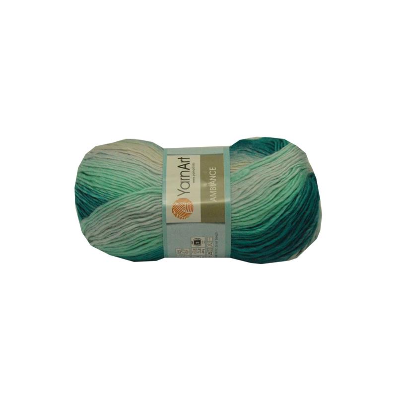 Włóczka Ambiance YarnArt Kolor 155melanż bieli, miety i morskiego. 100g/250m. Skład 20% Wool i 80% Akryl Zalecane druty 4mm, szydełko 4mm. Wiosenna melanżowa włóczka doskonale nadaje sie na chusty, bluzki, sikienki. Cena za 1 motek.
