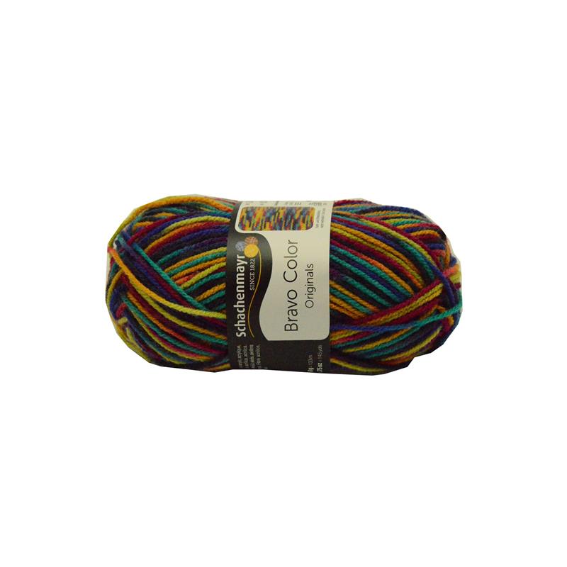 Włóczka Bravo Color. Kolor 02131melanż turkusu, żółtego, chabru, fioletu, różu. Motek 50 g/133 m Skład 100% akryl Zalecane szydełko i druty: 3-4 mm Akrylowa włóczka średniej grubości w efektownych połączeniach kolorystycznych. Całoroczna, wszechstronne zastosowanie, łatwa w pielęgnacji, niegryząca. Świetny efekt daje w połączeniu z jednokolorową wersją. Cena za 1 motek.