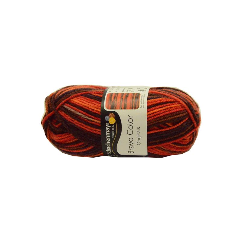 Włóczka Bravo Color. Kolor 02087 melanż brązu, pomaranczy czerwonego. Motek 50 g/133 m Skład 100% akryl Zalecane szydełko i druty: 3-4 mm Akrylowa włóczka średniej grubości w efektownych połączeniach kolorystycznych. Całoroczna, wszechstronne zastosowanie, łatwa w pielęgnacji, niegryząca. Świetny efekt daje w połączeniu z jednokolorową wersją. Cena za 1 motek.