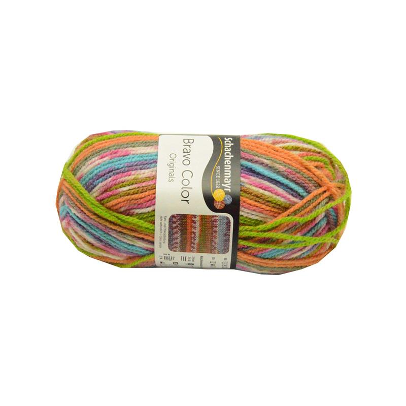 Włóczka Bravo Color. Kolor 02081 melanż zielonego, pomarańczowego, niebieskiego. Motek 50 g/133 m Skład 100% akryl Zalecane szydełko i druty: 3-4 mm Akrylowa włóczka średniej grubości w efektownych połączeniach kolorystycznych. Całoroczna, wszechstronne zastosowanie, łatwa w pielęgnacji, niegryząca. Świetny efekt daje w połączeniu z jednokolorową wersją. Cena za 1 motek