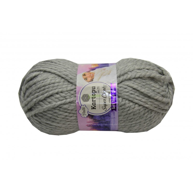 Włóczka Kartopu Super Chunky Soft Touch Bulky Kolor 915 szary. 100g/90m. Skład: 20% wełna, 80% akryl Polecane druty 11-12, szydełko 7 Włóczka nadaje sie na wyroby jesienno- zimowe. Doskonała na swetry, czapki, kominy Cena za 1 motek.