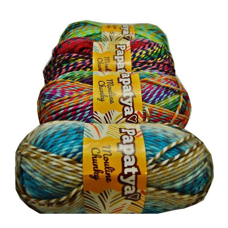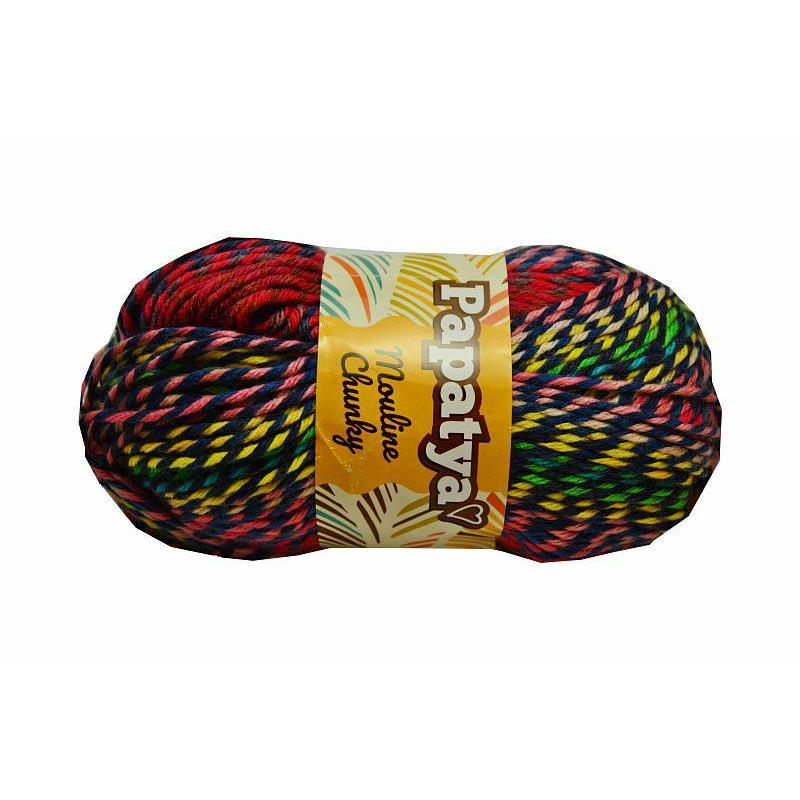 Włóczka PAPATYA Mouline Chunky . Kolor róż, czerwony, zielony, granat i żółty. 100g/160m skład:100% akryl. zalecane szydełka 5,5mm. zalecane druty6-7mm Miękka, wielobarwna włóczka świetnie nadaje się na czapki, kominy, szaliki i swetry. Cena za 1motek.