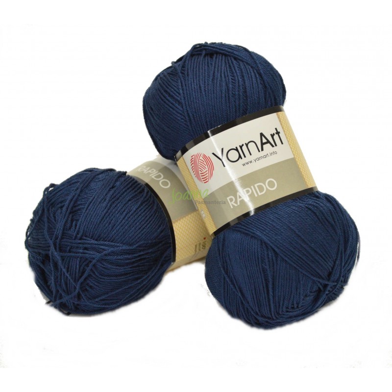 Włóczka Rapido YarnArt. Kolor 696 granat.100% mikrofibra. 100g/350m. Zalecane druty 2,5mm, szydełko 3mm. Przypomina bawełnę, dostępna w pięknych kolorach. Polecana na letnie bluzki, topy, sweterki, sukienki itd. Można z niej również wykonać chusty i szale. Włóczka przeznaczona do robótek na drutach i na szydełku.