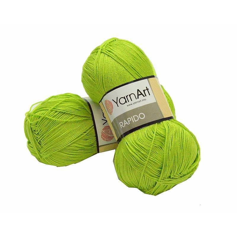 Włóczka Rapido YarnArt. Kolor 691zielone jabłuszko. 100% mikrofibra. 100g/350m. Zalecane druty 2,5mm, szydełko 3mm. Przypomina bawełnę, dostępna w pięknych kolorach. Polecana na letnie bluzki, topy, sweterki, sukienki itd. Można z niej również wykonać chusty i szale. Włóczka przeznaczona do robótek na drutach i na szydełku.