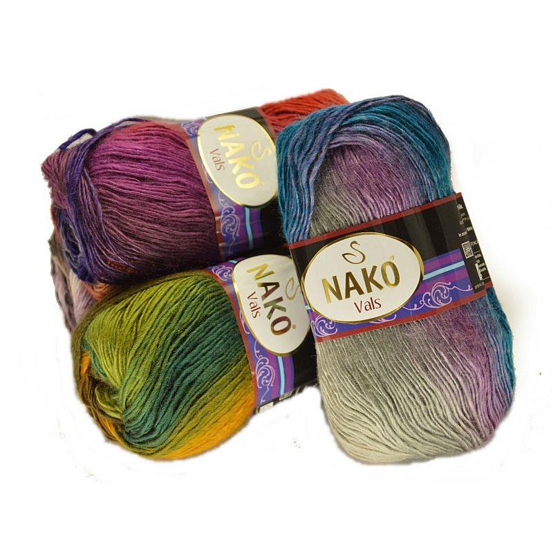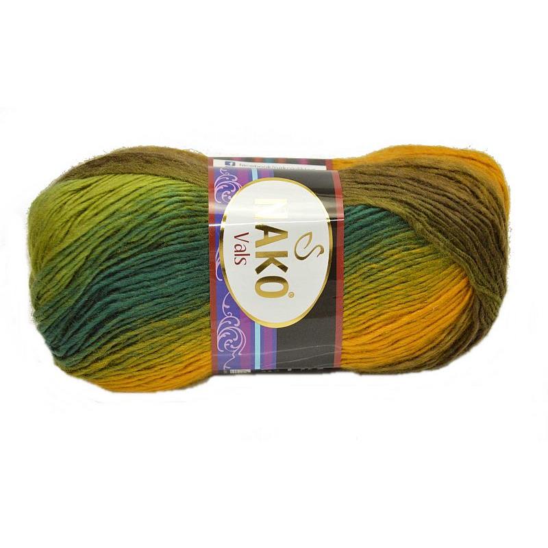 Włóczka NAKO VALS cieniowana. Kolor melanż zieleni,brązu,miodu. 85989 Efektowna włóczka VALS w pięknych kolorach.Posiada naturalny połysk. Ciekawe przejścia kolorów tworzą niezwykły efekt. Nadaje się do różnych rodzajów dzianin, swetrów, doskonała na szale i chusty. Skład - 100 % akryl 100 g/ 240 metrów Druty - 4 / 4,5 mm Szydełko - 3,5 mm