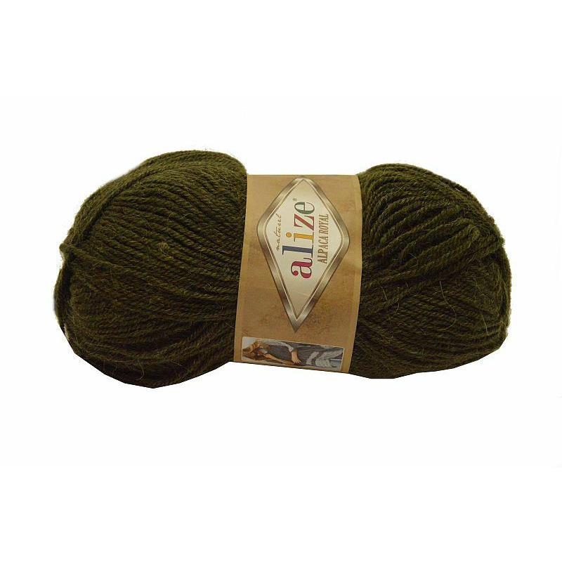 Włóczka Alize Alpaca Royal. Kolor 567 zielony. Skład: 55% akryl, 30% alpaka, 15% wełna. 100g/250metrów. Zalecane druty 4-5. Zalecane szydełko 2-4. Włóczka polecana na jesienno-zimowe wyroby np. czapki, swetry, poncza, szale, kamizelki itd.