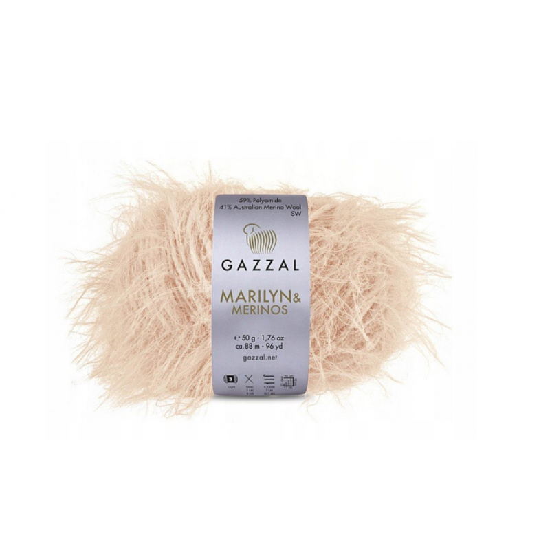 Gazzal Marilyn & Merinos to bardzo miła w dotyku, delikatna i puszysta włóczka z dodatkiem australijskiej wełny merynosowej typu Superwash.
