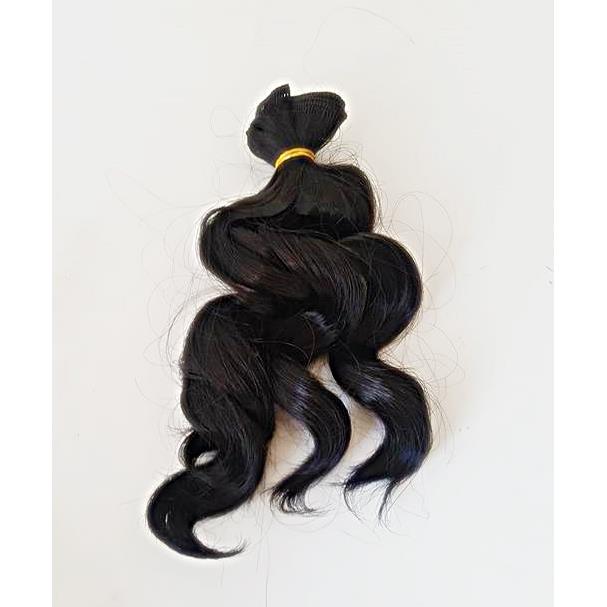 Włosy do lalek . Kolor CZARNY .Falowane. Długość 15cm na 1m taśmie. Cena za 1 sztukę.