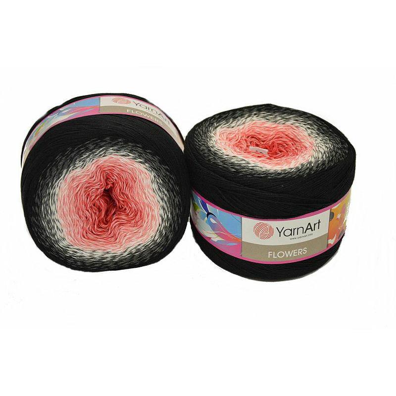Włóczka FLOWERS YarnArt. Kolor 260 czarny, szary, biały, róż. Motek: 250 gram /1000mb. Mieszanka poliakrylu 45% i bawełny 55%. Ładne zestawienia kolorystyczne, które pięknie łączą się w gotowym wyrobie. Z jednego motka możemy zrobić piękną chustę. Zalecane druty: 2,5 mm. Zalecane szydełka: 3,5 mm Cena za 1 motek.