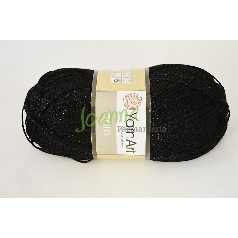 Włóczka YarnArt Gold kolor czarny z czarną nitką.9038. 100g/400m. 92% Akryl, 8% metalic polyester. Zalecane druty
