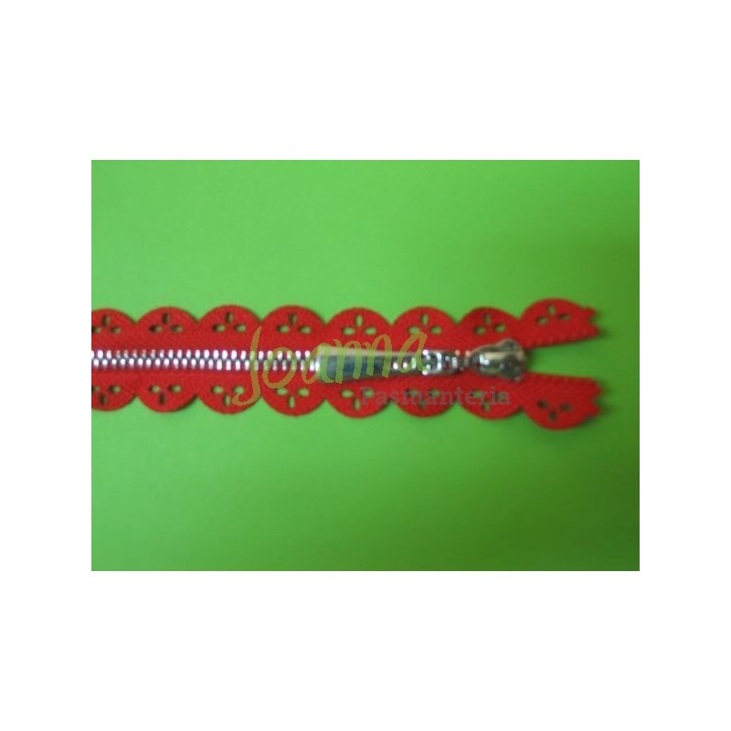 Zamek ozdobny ażurowy czerwony. Długość 50cm. Rozdzielczy.